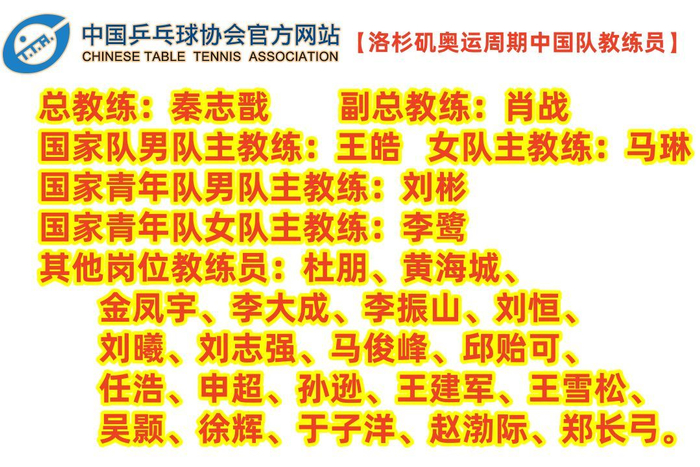 关于教练们具体负责的队员分配,目前尚未公布。指导孙颖莎和蒯曼的邱贻可、指导陈幸同和石洵瑶的马俊峰等人,很可能将继续负责原有的队员。但由于此前负责王楚钦的肖战已是副总教练、负责林诗栋的陈振江等人已不在教练组名单中,预计将以男队为中心,对主管队员进行新一轮的"洗牌"。